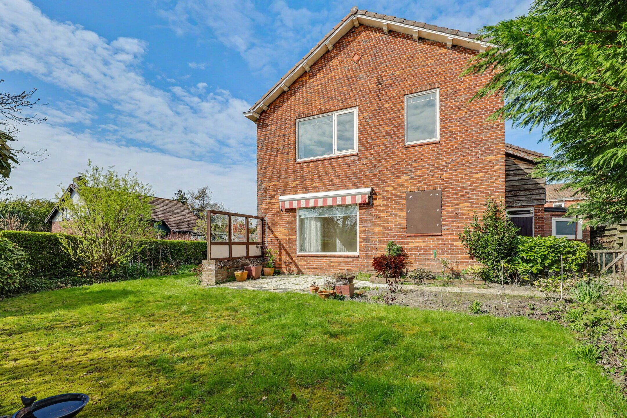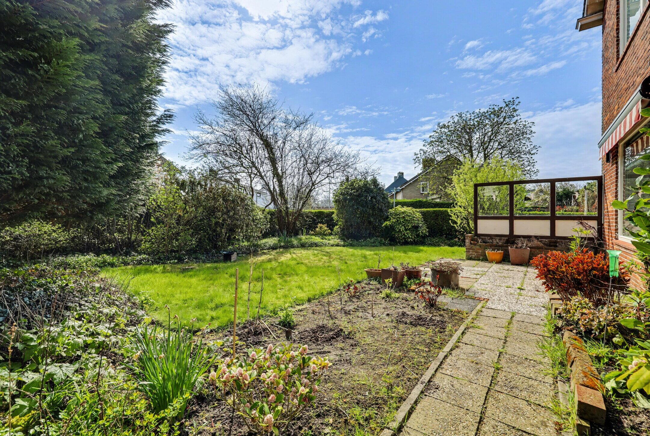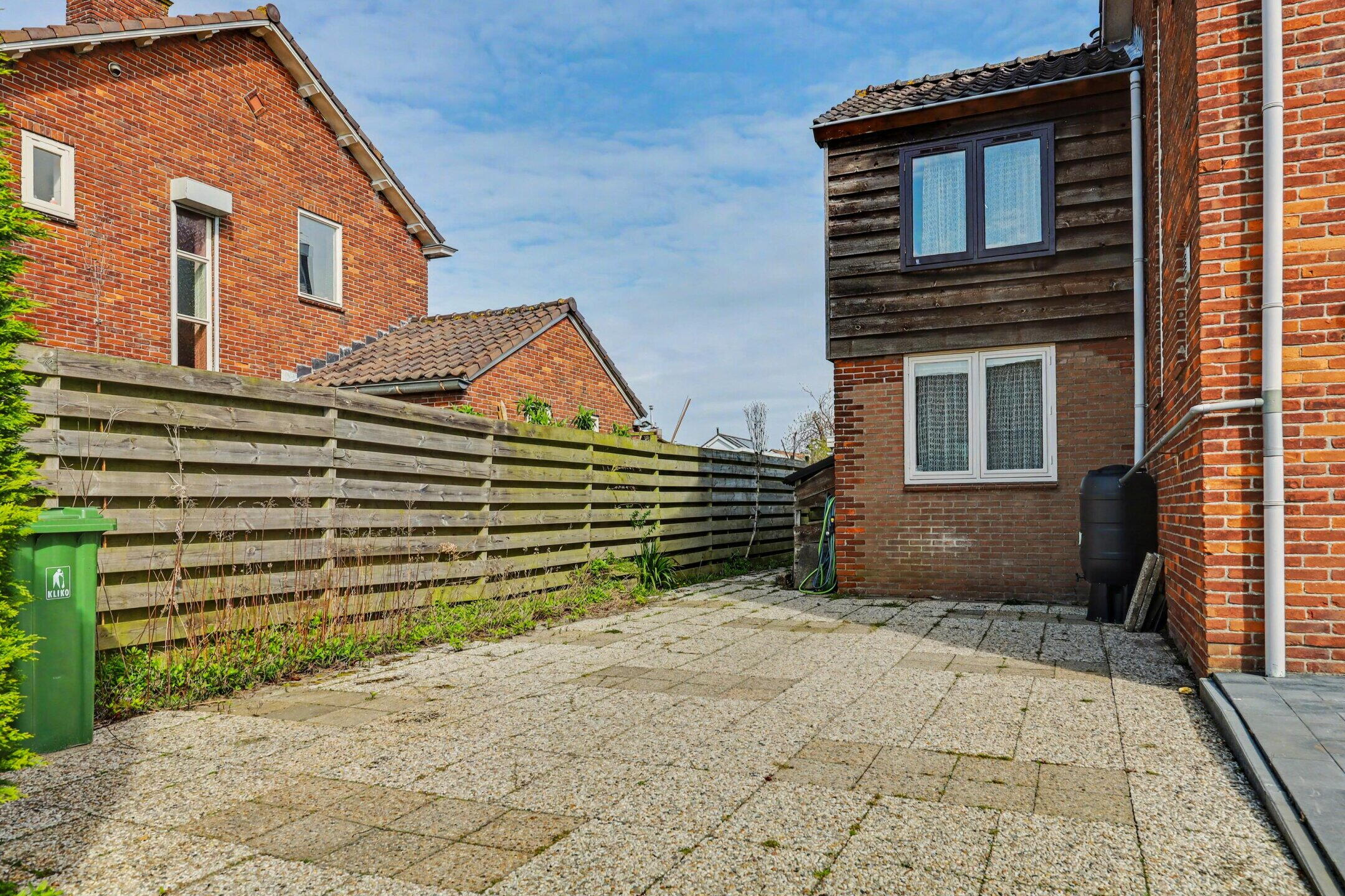 Via de achtertuin komt u in de ruime zijtuin met veel privacy. Deze zijde is pal op het zuiden gelegen dus een heerlijke plek om te genieten. De oprit biedt plaats voor 2 auto's of een camper/caravan.