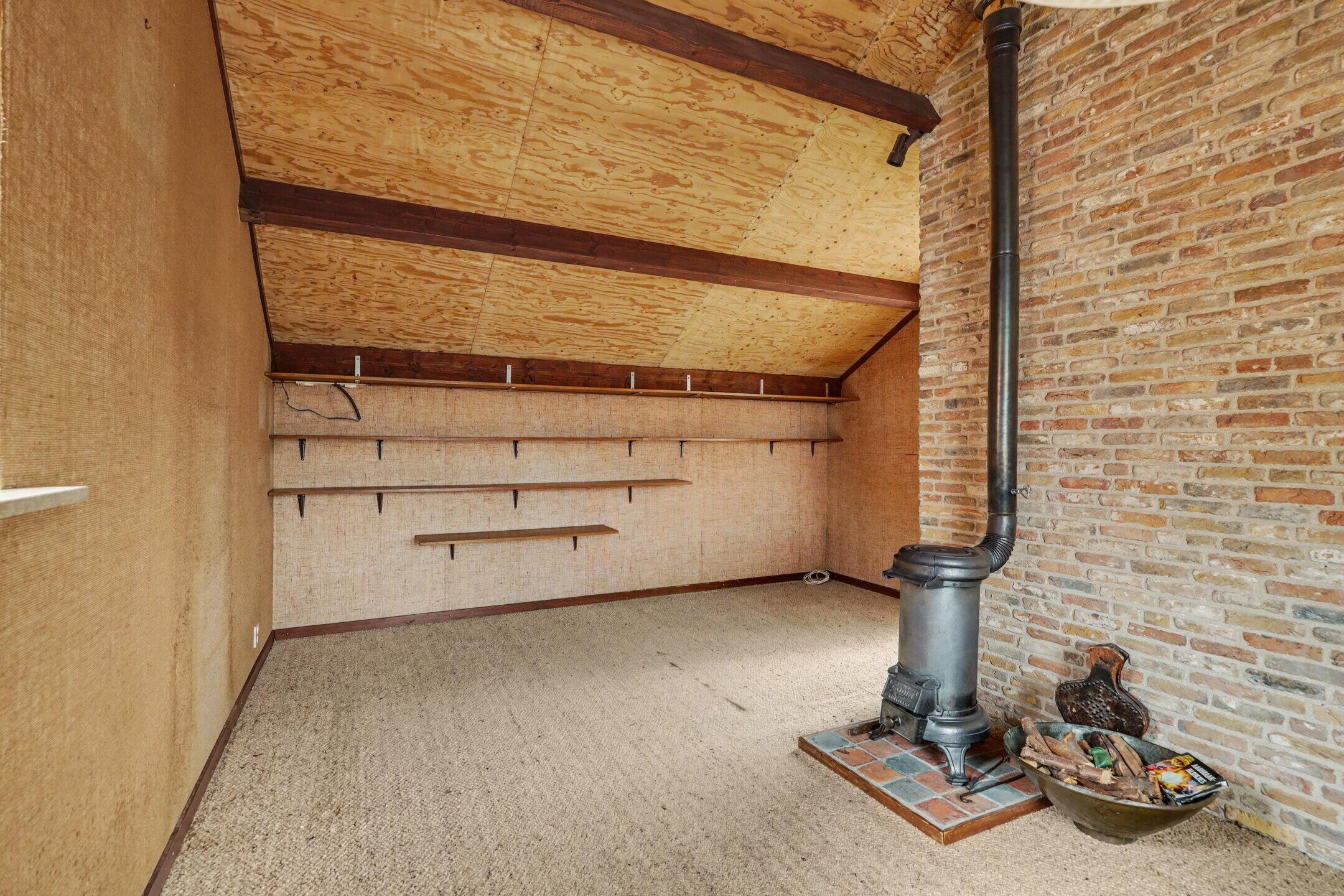 Middels een vlizotrap is de ruime zolder bereikbaar en is voorzien van een dakvenster. De zolder biedt voor het grootste gedeelte stahoogte en kan prima gebruikt worden als ruime berging of hobbyruimte. Tevens is hier de cv opstelling, een Intergas uit 2023. Deze wordt gehuurd, € 24,30 per maand.
