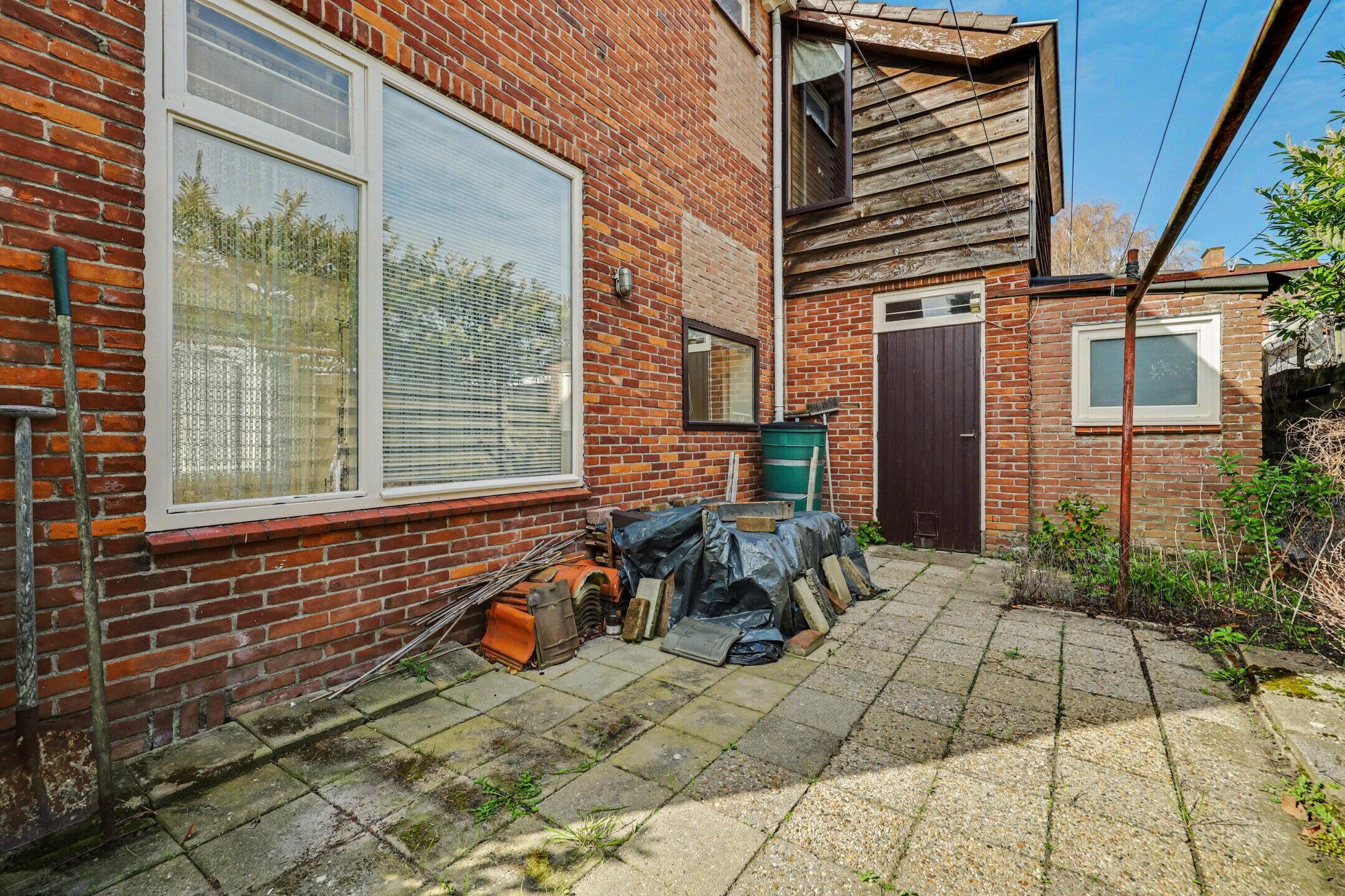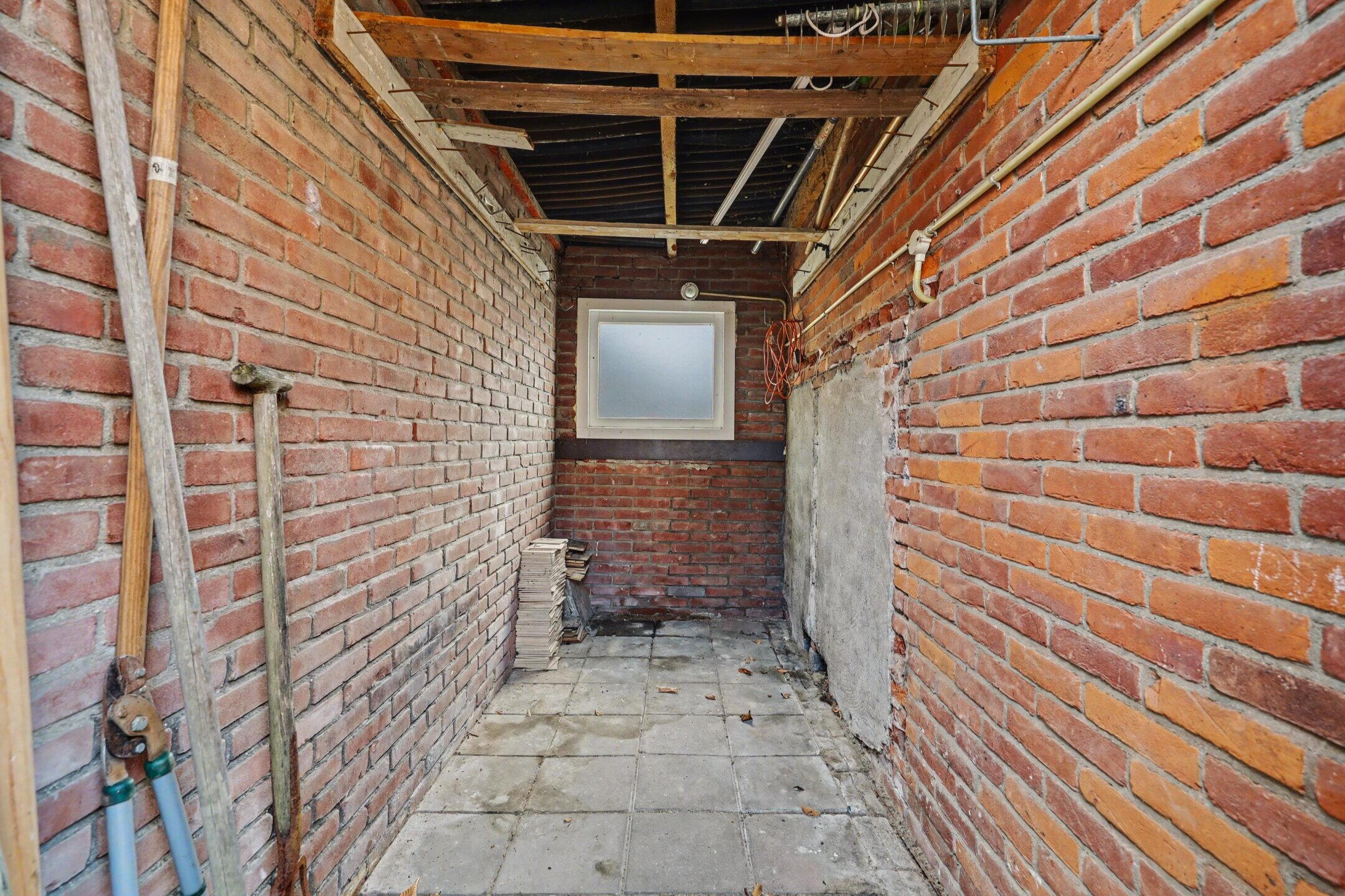 Via de oprit komt u bij de aangebouwde stenen berging, genoeg plaats voor de fietsen en tuingereedschap.